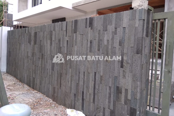 Abu-abu natural yang tenang. Tekstur unik berpori, cocok untuk fasad rumah minimalis atau pagar.