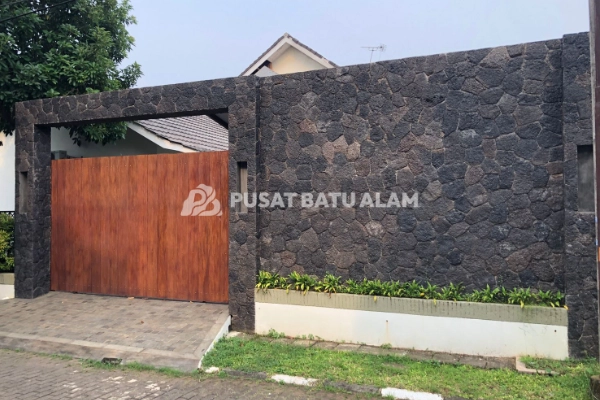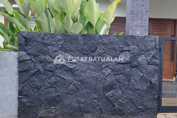 Hitam kelam dengan tekstur pahat yang kuat. Memberi karakter kokoh dan maskulin pada pagar rumah.