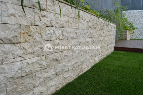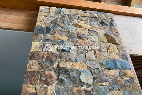 Tekstur kasar dan bentuk acak artistik. Pilihan tepat untuk pondasi taman atau dinding gaya rustik.